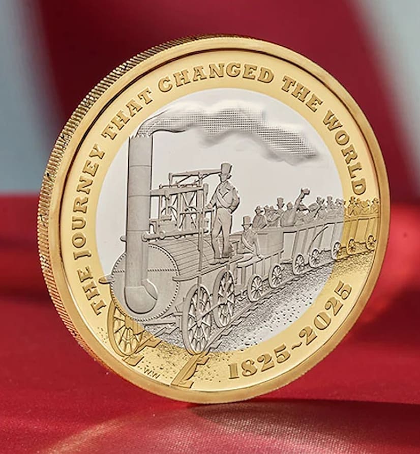 Designed by William Webb, the reverse of the commemorative £2 coin struck depicts that seminal journey in 1825.