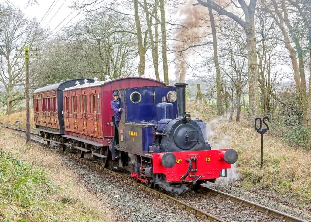 With a tractive effort of just 3870lb-ft, Marcishas limited opportunities to haul passenger trains, but on New Year’s Day it joined Whistle-Up with a two-coach set of vintage carriages and Andy on the regulator as it ran shuttles between Tenterden Town and Rolvenden stations, a return journey of three miles. Due to its size the little 12-ton engine was unable to provide steam heat, but passengers were advised in advance to dress warmly on a New Year’s day that left happy passengers with an equally warm feeling.