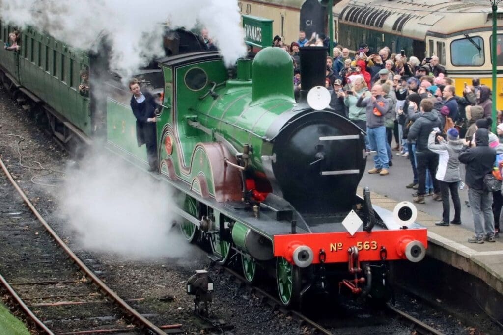 At noon on January 1, the crew of the Swanage Railway Trust’s unique LSWR T3 4-4-0 No. 563 blew its whistle as it departed Swanage station hauling a passenger train to Norden. The young crew comprised volunteer driver Billy Johnson from Swanage and volunteer fireman Aidan Strand from Poole.